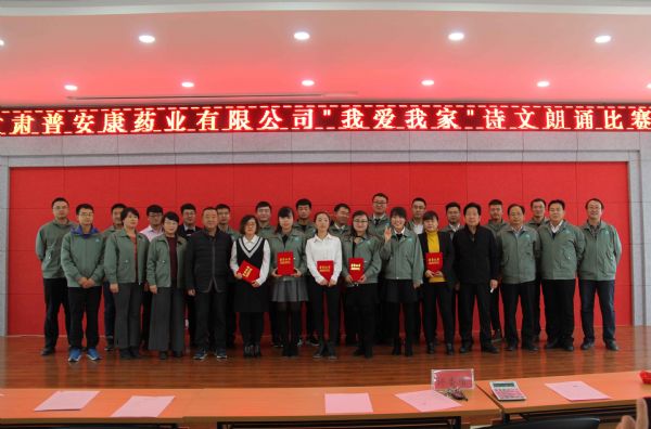 為了進(jìn)一步培育公司職工家國情懷,踐行"注重家庭、注重家教、注重家風(fēng)"精神,豐富職工文化生活。2017年12月29日,甘肅普安康藥業(yè)有限公司在公司在辦公樓4樓會議室組織開展了以"我愛我家"為主題的詩文朗誦比賽。公司領(lǐng)導(dǎo)杜寶林和各部門負(fù)責(zé)人及部分職工共53人觀看了比賽。