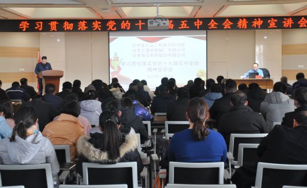 為深入學(xué)習(xí)宣傳貫徹黨的十九屆五中全會(huì)精神,進(jìn)一步提高黨員干部學(xué)習(xí)理解全會(huì)精神的思想自覺、政治自覺和行動(dòng)自覺,12月3日,甘肅藥業(yè)集團(tuán)普安制藥股份有限公司、甘肅省農(nóng)業(yè)工程技術(shù)研究院、甘肅農(nóng)墾藥物堿廠有限公司聯(lián)合召開了學(xué)習(xí)貫徹黨的十九屆五中全會(huì)精神宣講會(huì)。由武威市委宣講團(tuán)成員、武威十五中副校長(zhǎng)馬驍同志宣講。甘肅藥業(yè)集團(tuán)普安制藥股份有限公司黨委委員、紀(jì)委書記李雎同志主持會(huì)議。
