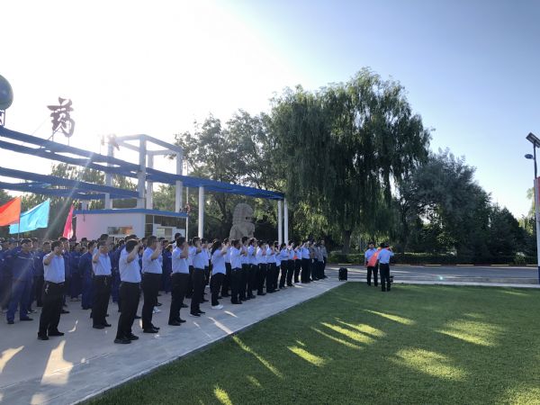 7月1日早7點15分,迎著初升的朝陽,甘肅普安制藥股份有限公司在廠區大門口前舉行了升國旗與重溫入黨誓詞儀式。