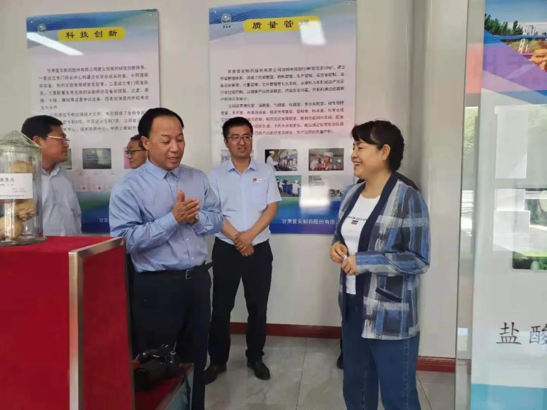 6月8日,甘肅省政協(xié)副秘書長、農(nóng)工黨甘肅委員會(huì)專職副主委張彥凌一行十一人到普安公司調(diào)研。張彥凌一行察看了公司文化展廳、制劑外包車間、提取車間等。隨后,雙方召開座談會(huì)。