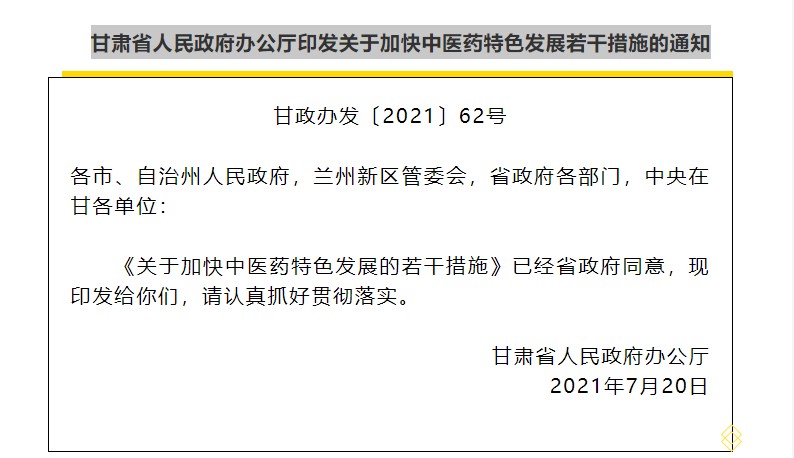 (四)提高中醫(yī)藥法治化水平。加強(qiáng)中藥監(jiān)管隊(duì)伍建設(shè),提升中藥審評(píng)和監(jiān)管現(xiàn)代化水平。將中醫(yī)健康服務(wù)機(jī)構(gòu)和人員誠(chéng)信經(jīng)營(yíng)情況納入不良執(zhí)業(yè)記錄檔案,并將相關(guān)企業(yè)行政許可、行政處罰等信息通過“信用中國(guó)”網(wǎng)站、國(guó)家企業(yè)信用信息公示系統(tǒng)(甘肅)依法公示。(省衛(wèi)生健康委、省司法廳、省市場(chǎng)監(jiān)管局、省藥監(jiān)局負(fù)責(zé))