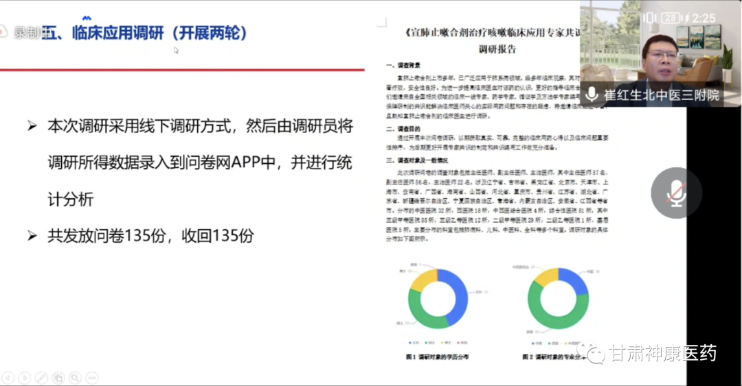 會上,由北京中醫藥大學第三附屬醫院崔紅生教授對宣肺止嗽合劑處方來源、獲獎專利、安全性等做了詳細的介紹。