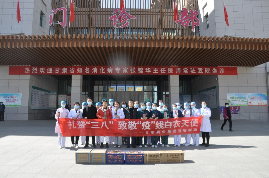 3月7日下午,普安制藥一行四人前往武威市中醫(yī)院慰問(wèn)奮戰(zhàn)在疫情防控“疫”線的女醫(yī)護(hù)人員,為她們獻(xiàn)上了鮮艷的玫瑰、新鮮的水果和藥品,祝奮戰(zhàn)在“疫”線以及默默奉獻(xiàn)在醫(yī)院各個(gè)工作崗位的全體女職工們“三八”節(jié)日快樂(lè),祝愿她們永遠(yuǎn)健康美麗,幸福快樂(lè)。