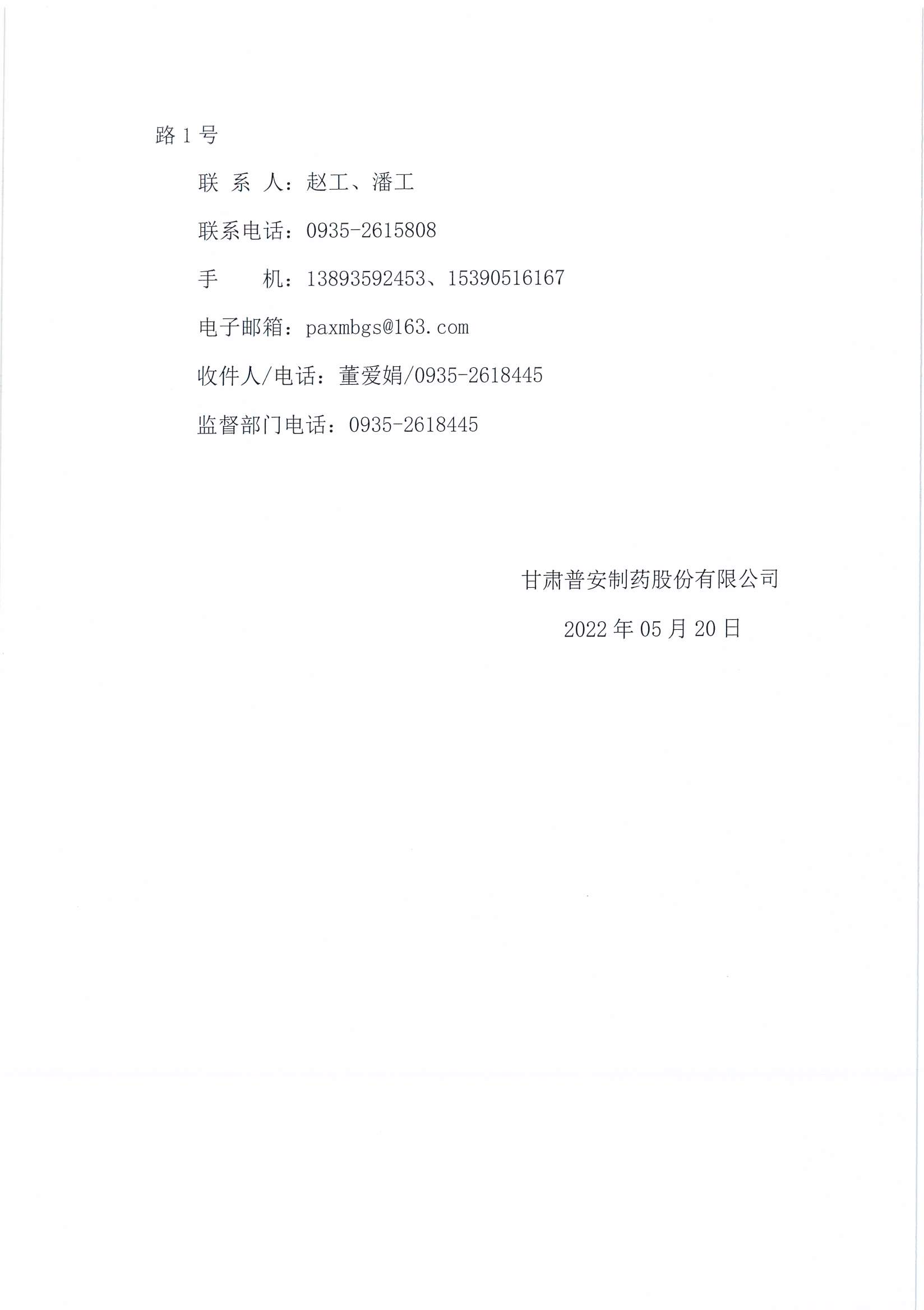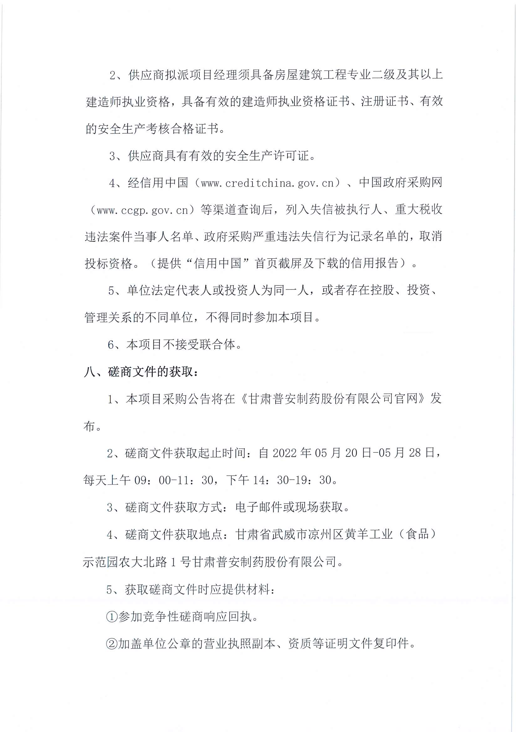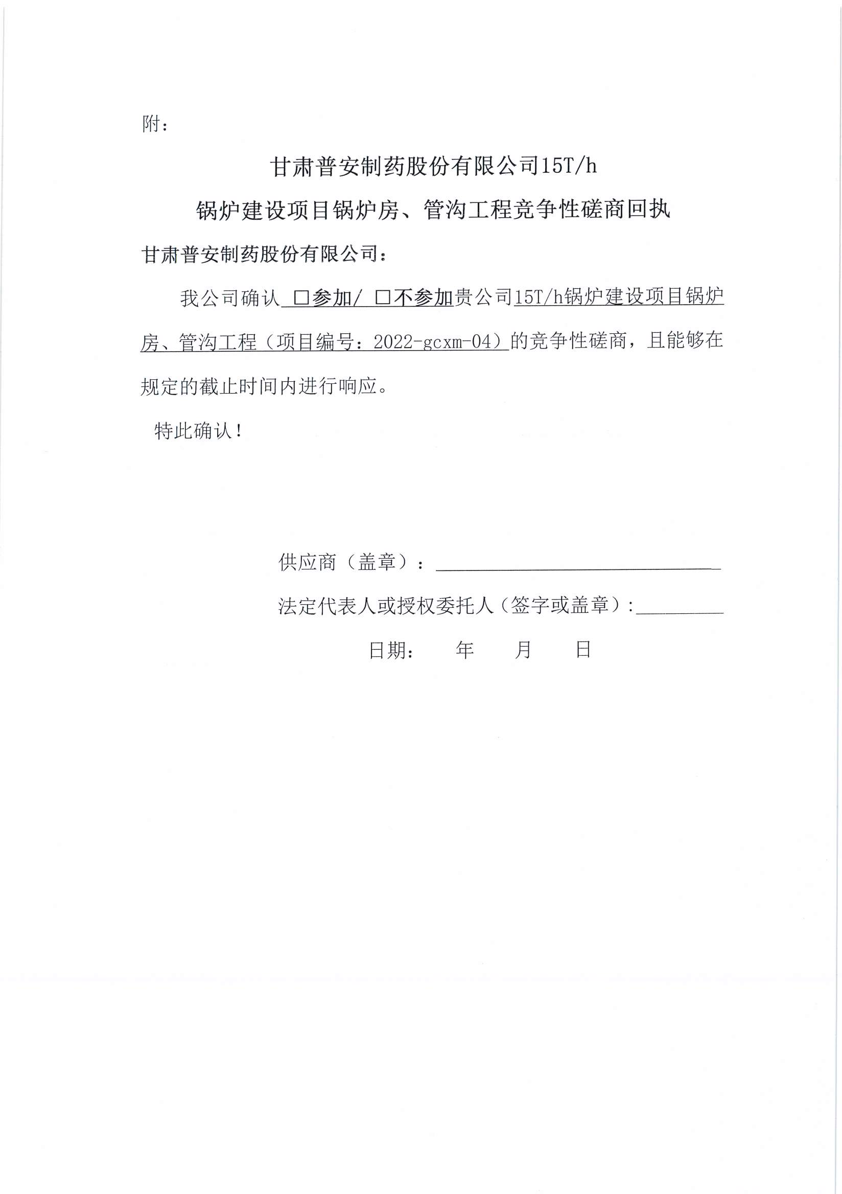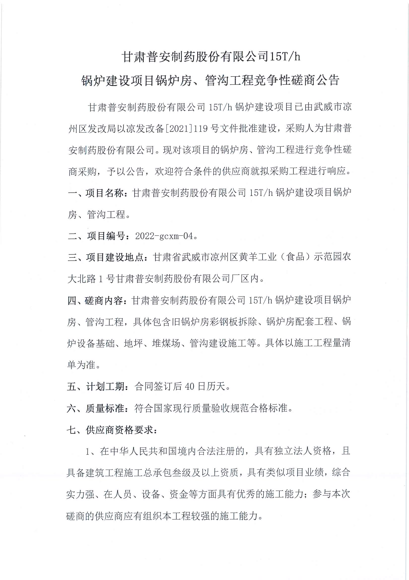甘肅普安制藥股份有限公司關(guān)于對15T/h鍋爐建設項目鍋爐房、管溝工程競爭性談判公告的澄清
