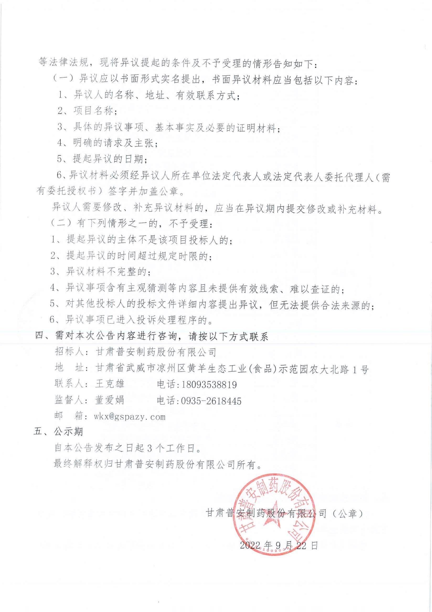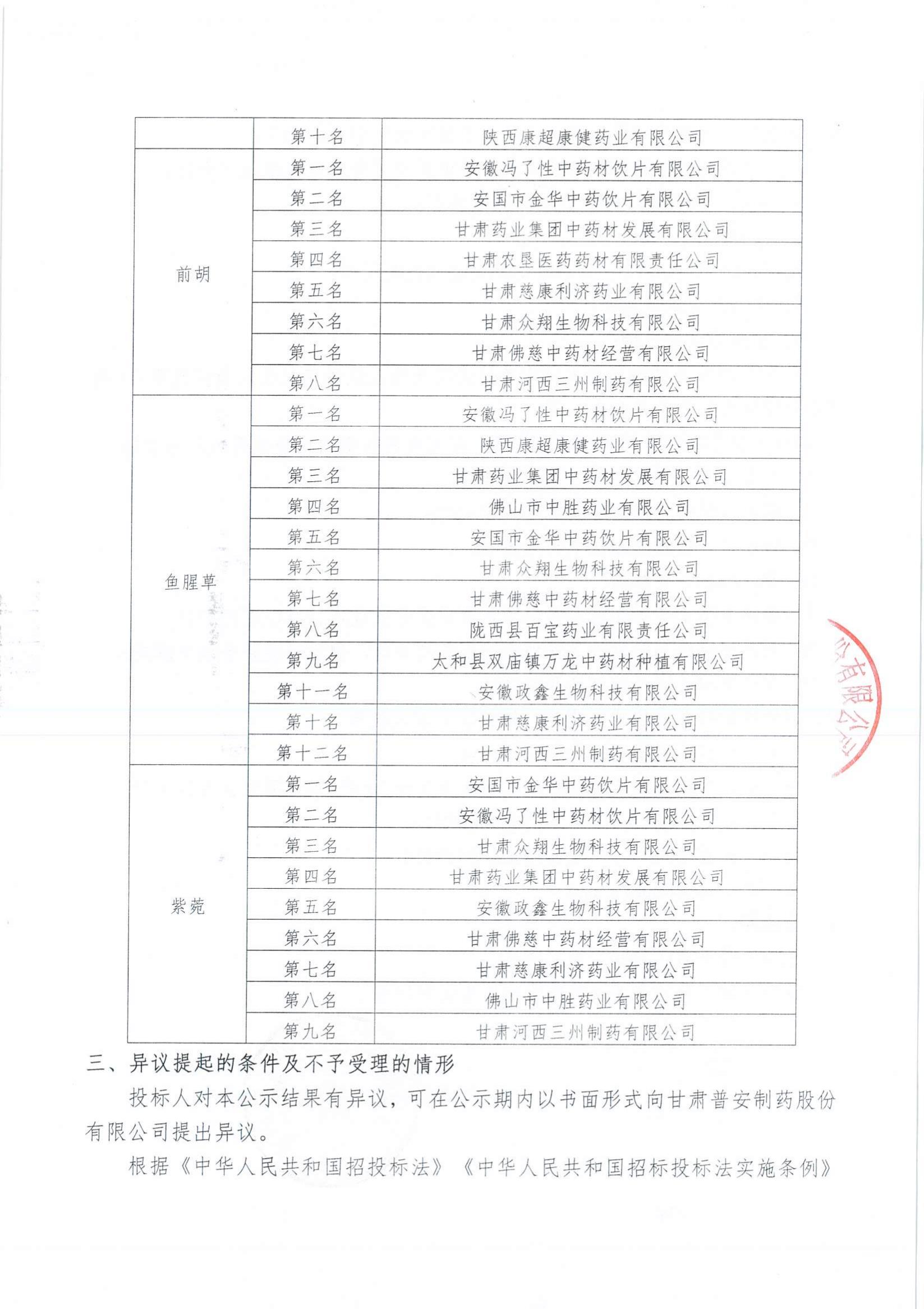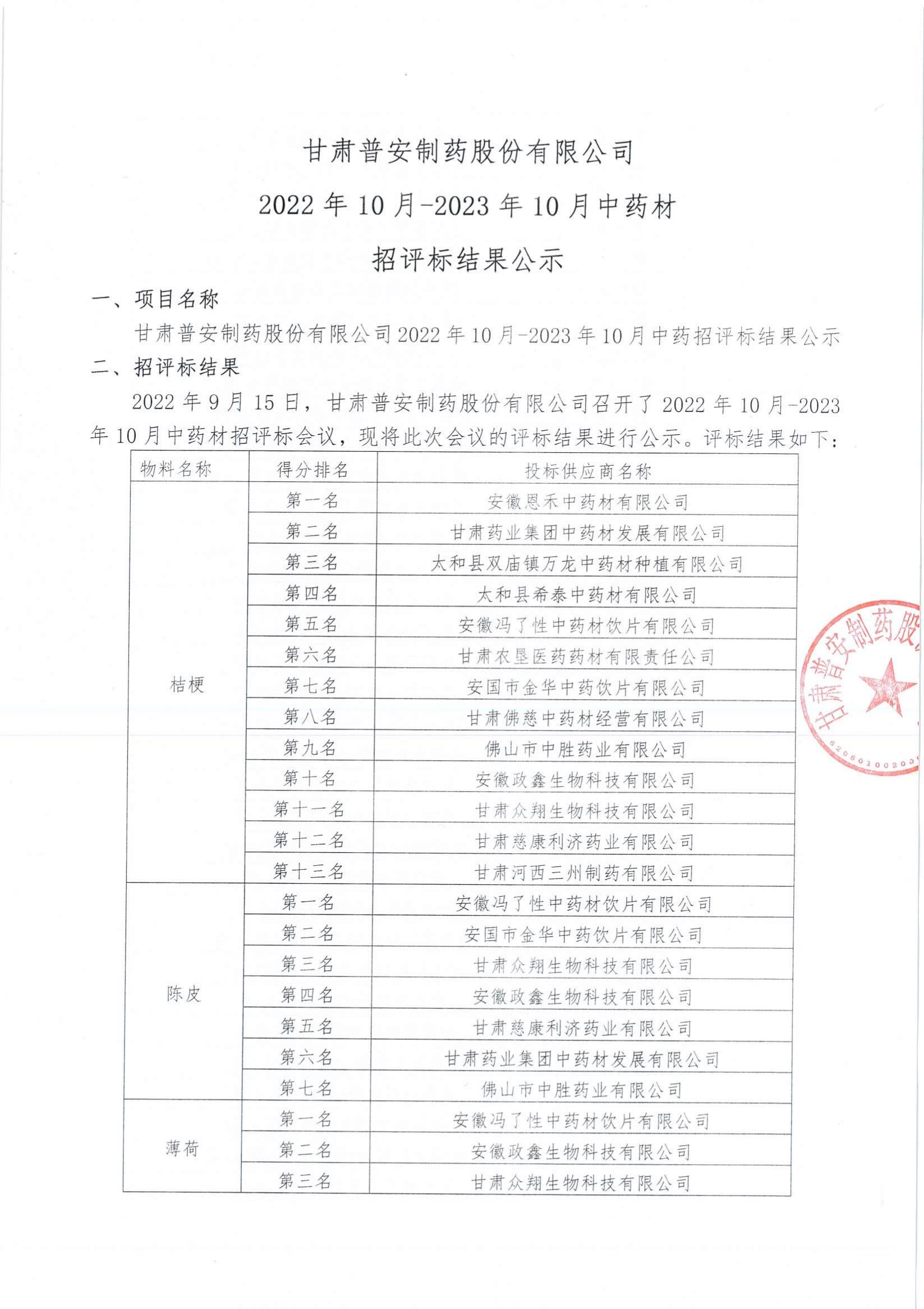 甘肅普安制藥股份有限公司2022年10月-2023年10月中藥材招評標(biāo)結(jié)果公示