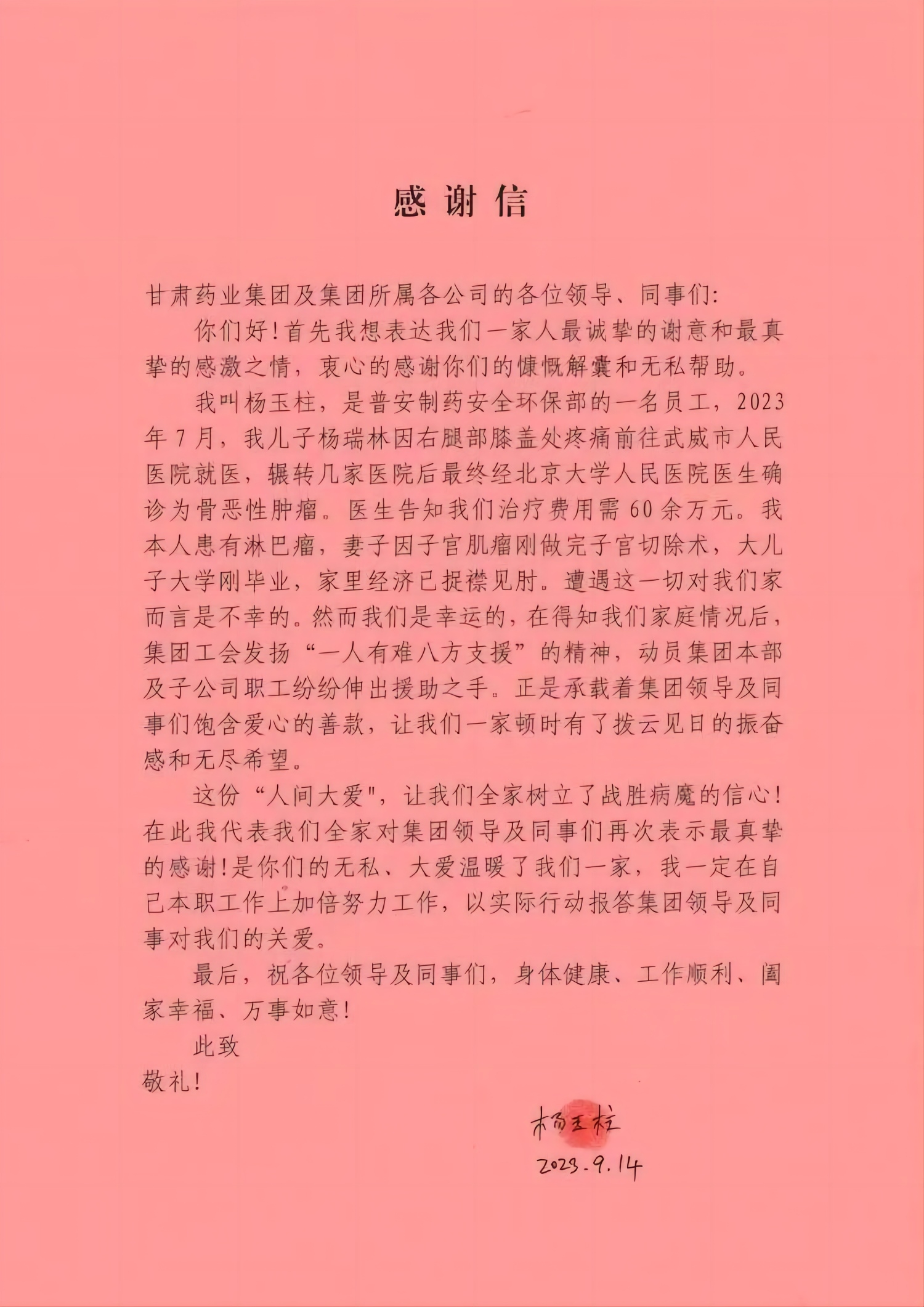 一方有難八方援,攜手共濟獻愛心-普安制藥舉辦“救助楊玉柱家屬”募捐金發放儀式