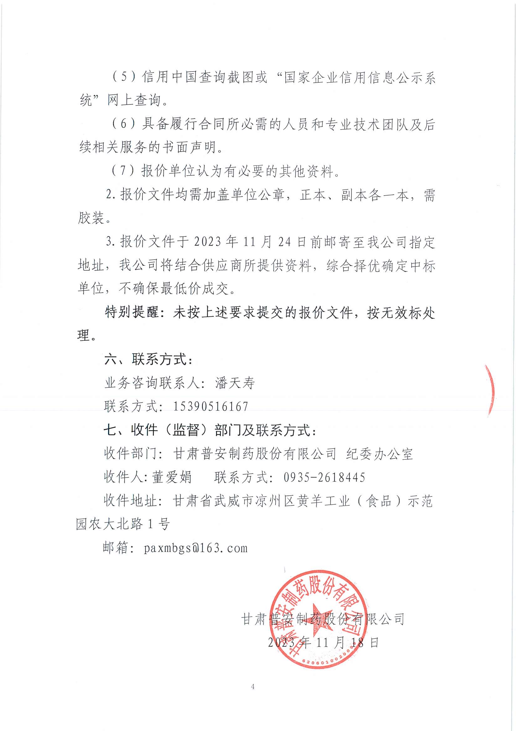 甘肅普安制藥股份有限公司年產(chǎn)5000萬盒(3億支)宣肺止嗽合劑等液體制劑生產(chǎn)線升級改造項目環(huán)評驗收詢價公告