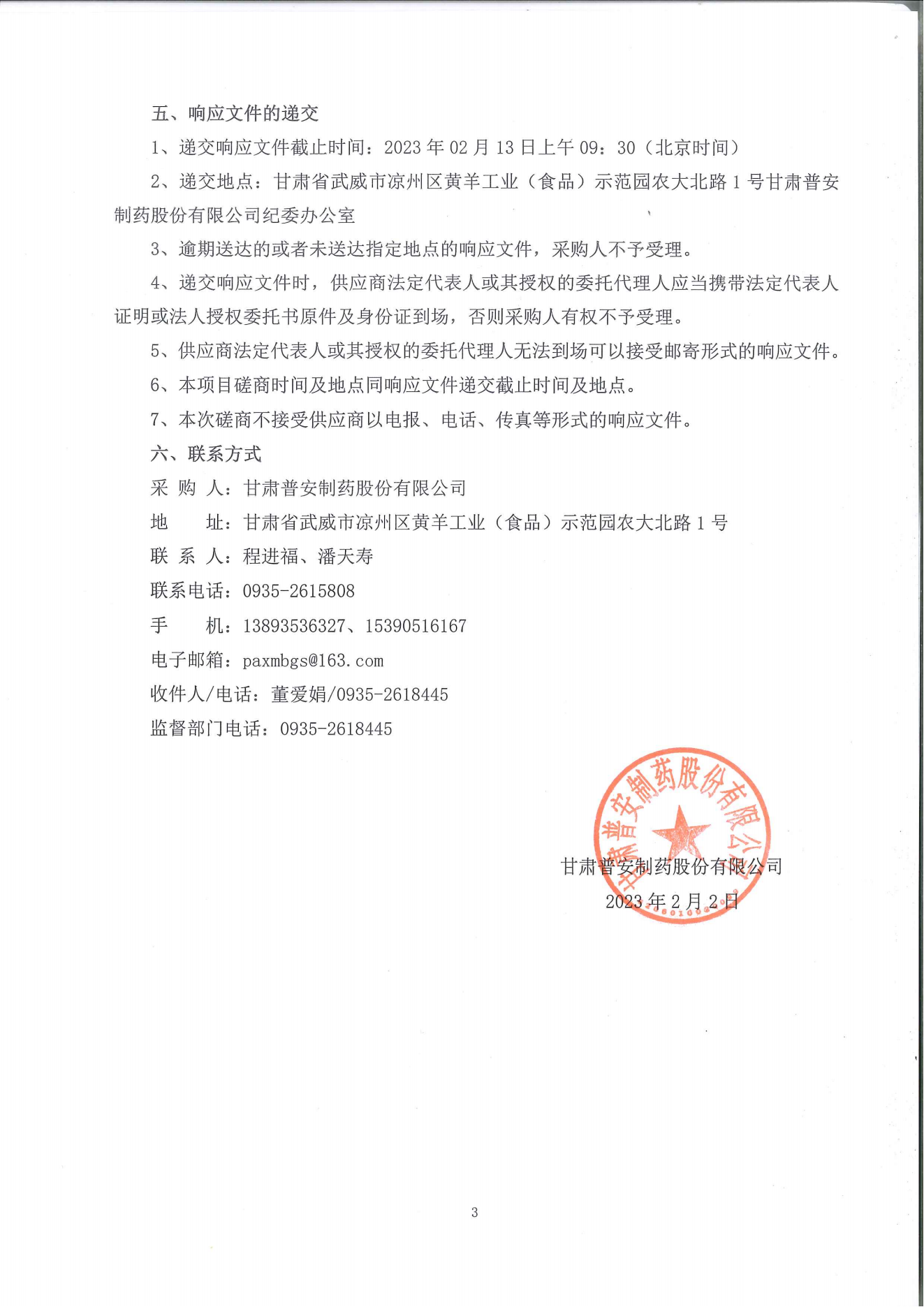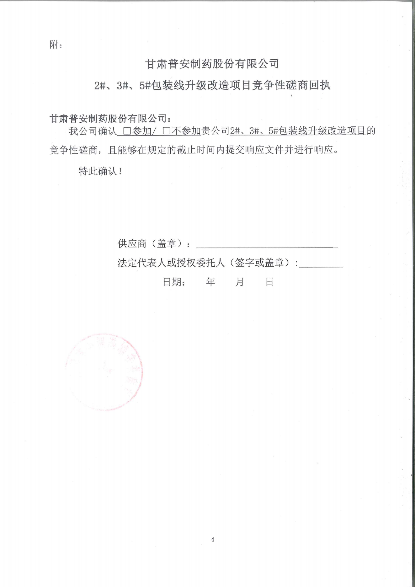 甘肅普安制藥股份有限公司 2#、3#、5#包裝線升級改造項目競爭性磋商公告