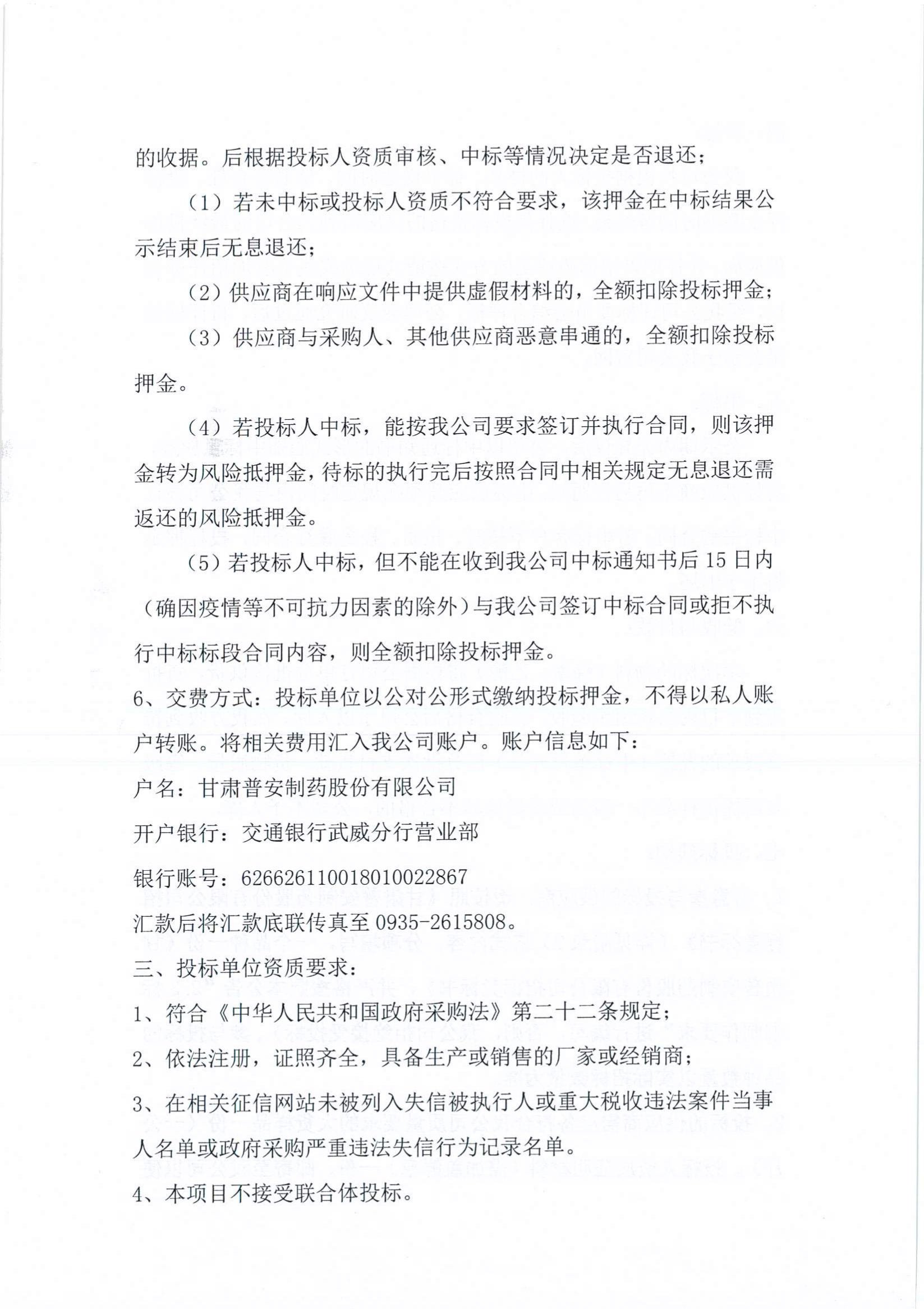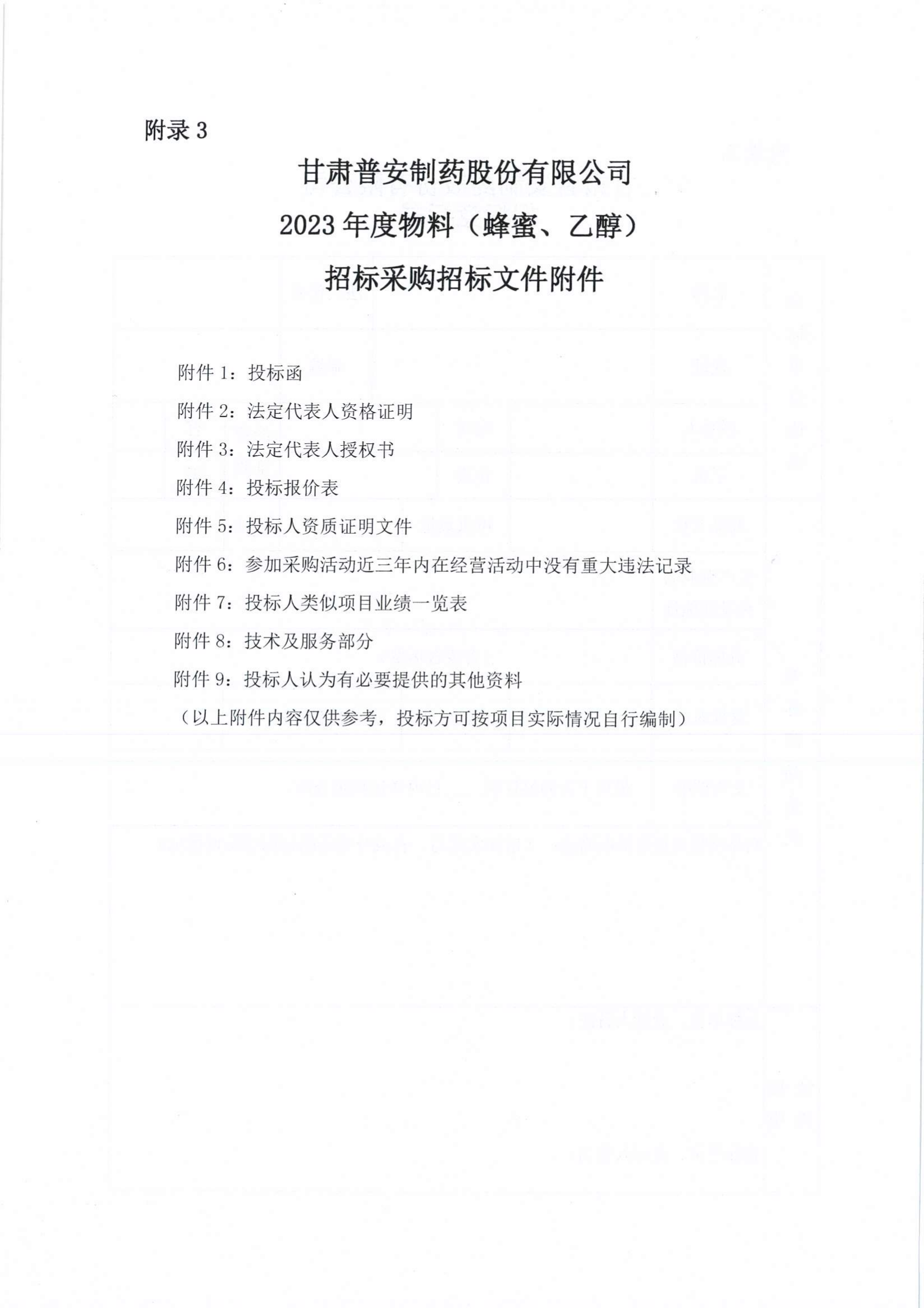 甘肅普安制藥股份有限公司2023年宣肺止嗽合劑物料(蜂蜜、乙醇)招標采購公告