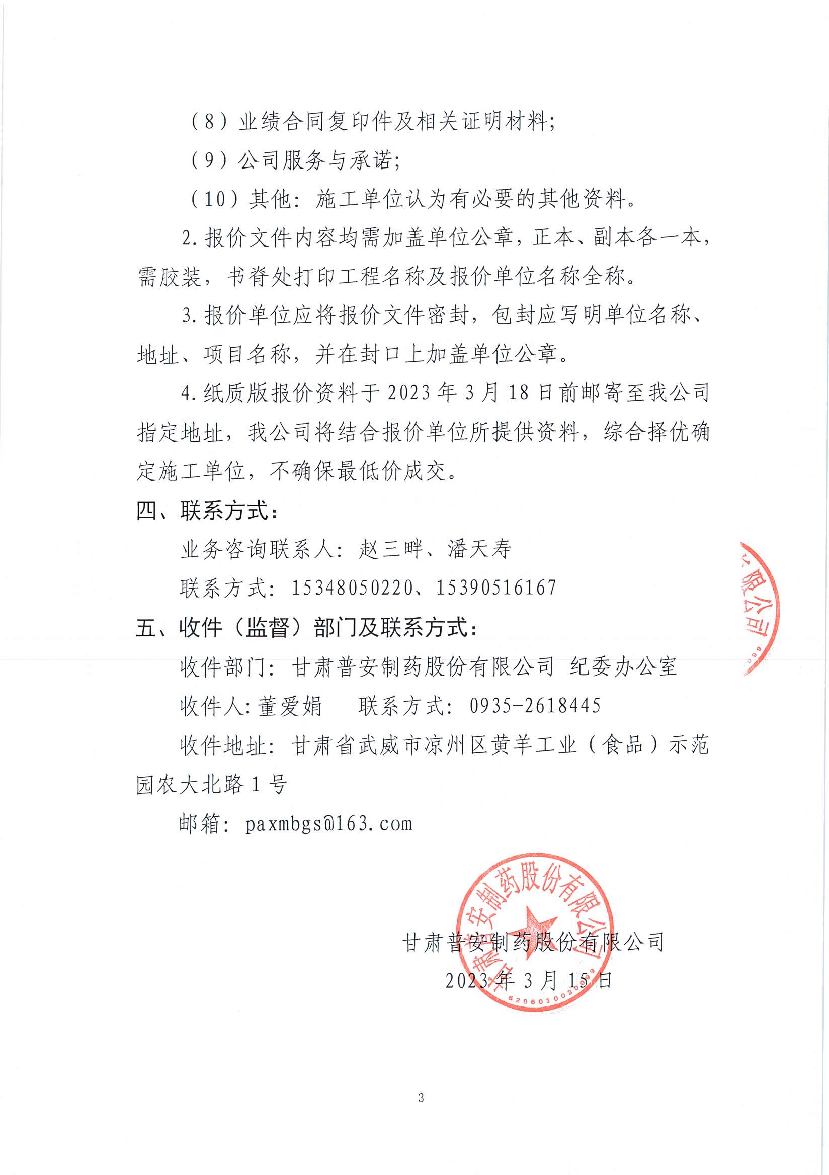 甘肅普安制藥股份有限公司原地下酒精庫拆除報價邀請公告