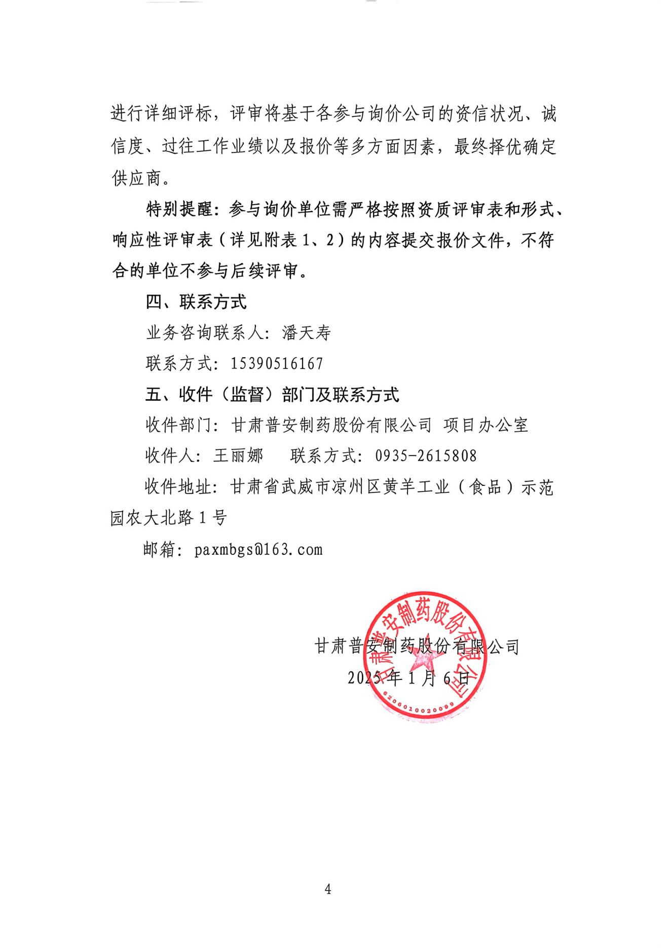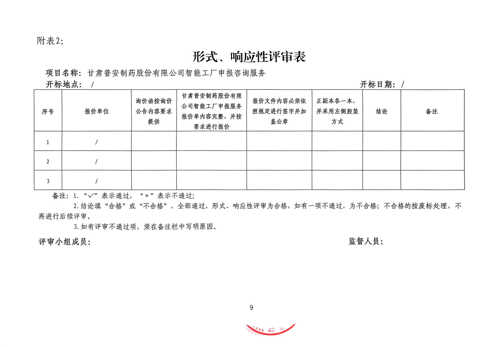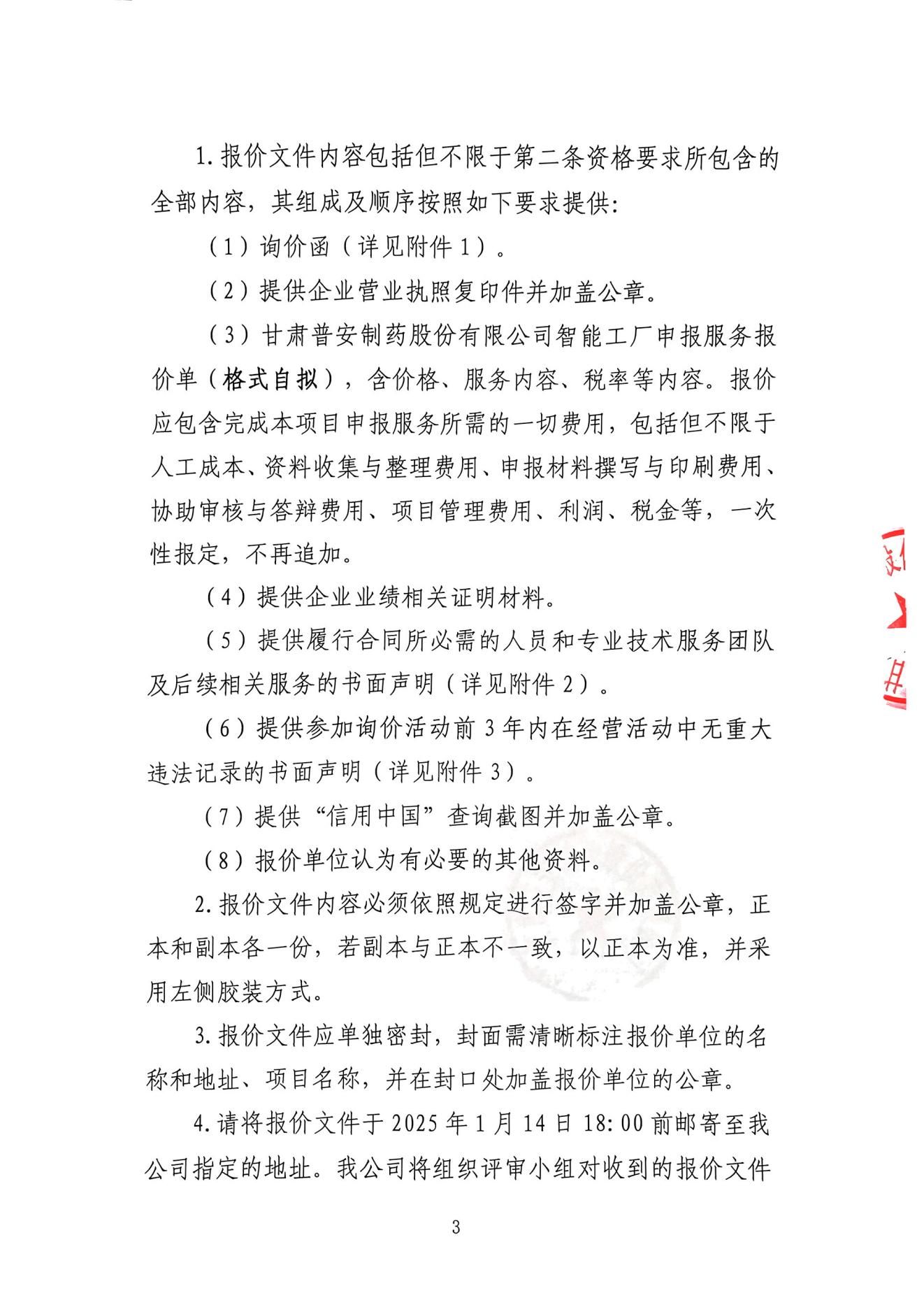 甘肅普安制藥股份有限公司智能工廠申報咨詢服務詢價公告