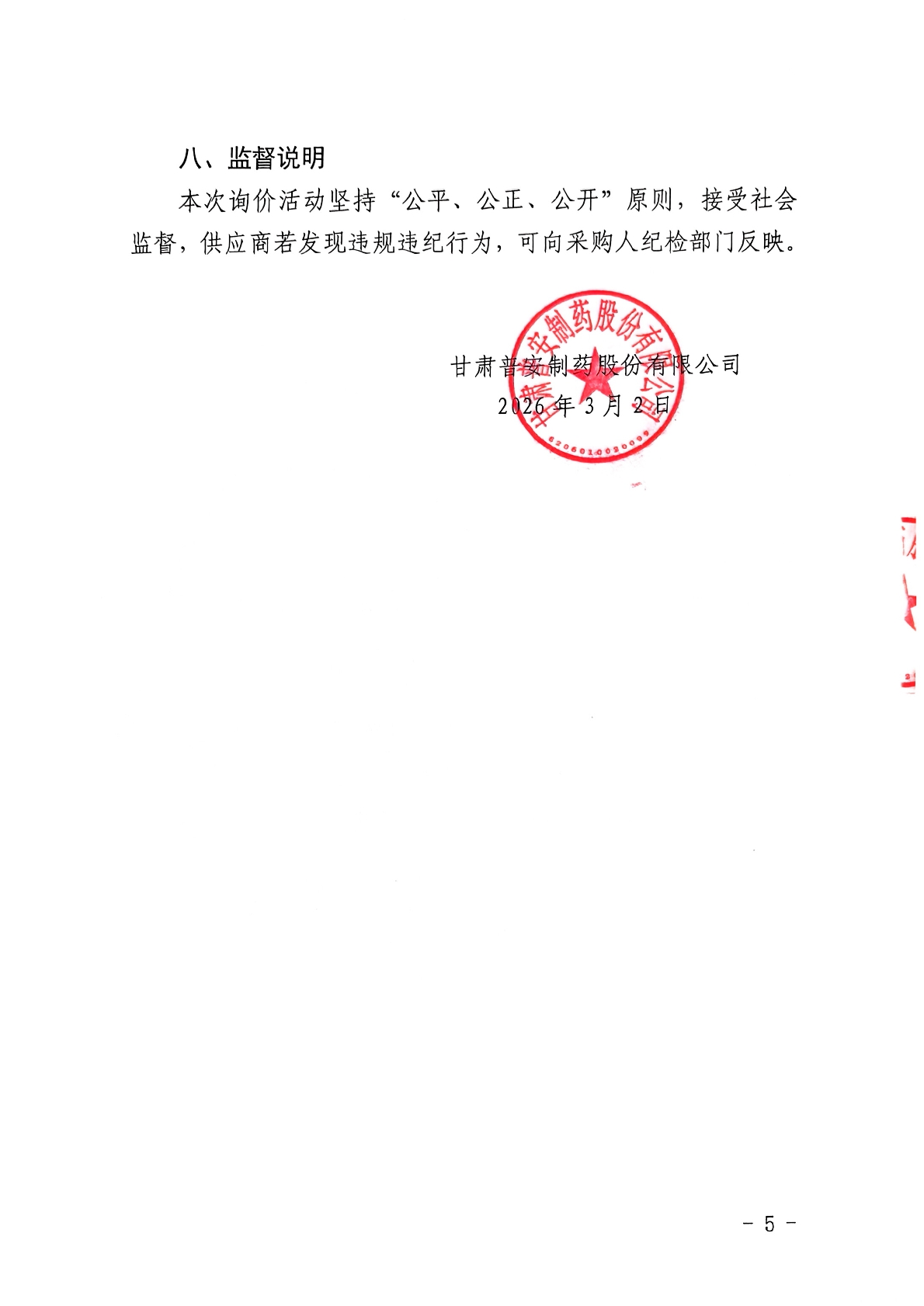 甘肅普安制藥股份有限公司基礎設施改造項目工程造價咨詢服務詢價公告